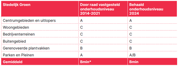 Tabel 3.8: Behaalde onderhoudsniveaus stedelijk groen in 2024