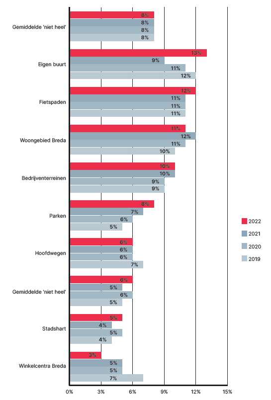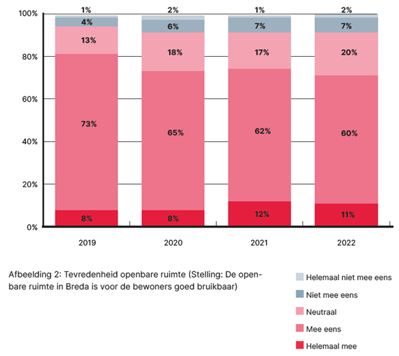 De gemeente Breda laat periodiek inwonersenquêtes uitvoeren om inzicht te krijgen in de ervaringen van inwoners op uiteenlopende thema’s, zoals leefbaarheid, veiligheid en duurzaamheid. In het najaar van 2022 is in dit kader wederom de Stadsenquête uitgevoerd. Samengevat is de beleving van de inwoners als goed te bestempelen.