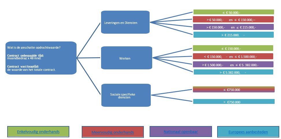 Schema enkelvoudig, meervoudig onderhands en Europese aanbestedingsprocedure *:
