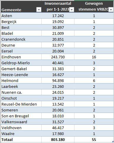 Op basis van de inwoneraantallen per 1-1-2023 geldt de volgende gewogen stemverhouding: