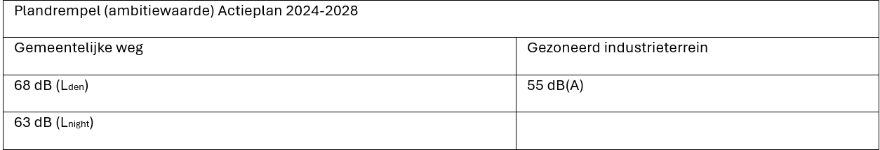 In het ontwerp Actieplan Geluid 2024-2028 is een plandrempel aangegeven, zijnde een daarbij aangegeven geluidbelasting Lden en geluidbelasting Lnight, vanwege de betrokken geluidsbron of geluidsbronnen, van geluidsgevoelige objecten.