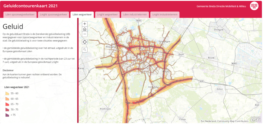 Afbeelding 3.2.1 Voorbeeld geluidbelastingkaart Breda Lden wegverkeer
