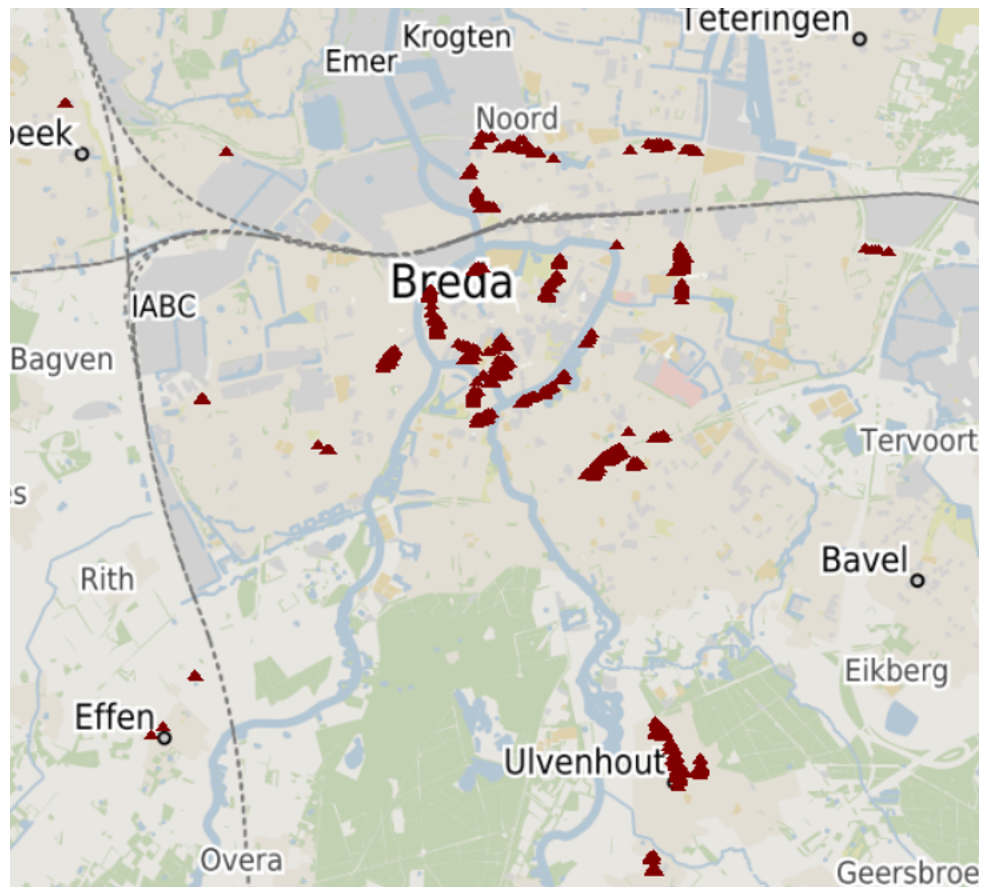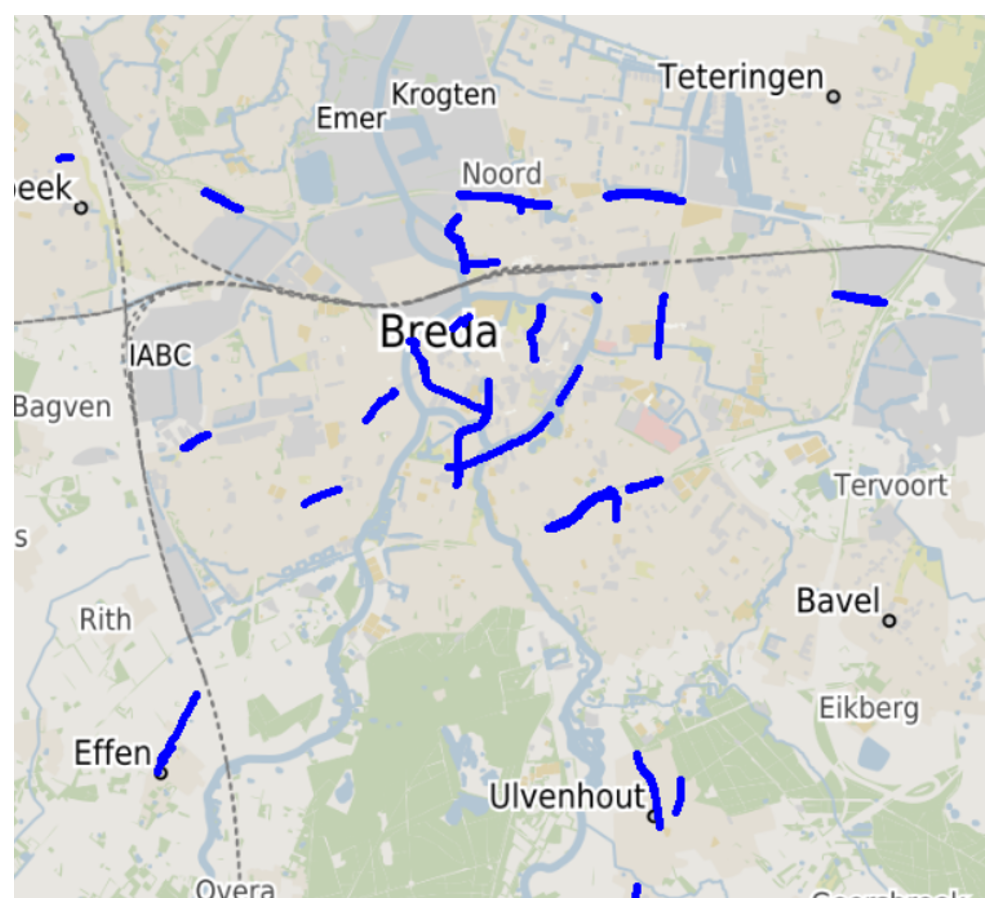 In de afbeelding 3.2.1 is te zien waar stil asfalt in Breda is toegepast.