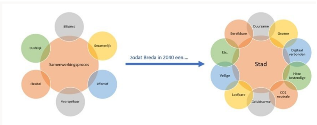 De doorontwikkeling van het programmeerproces werkt toe naar een samenwerkingsproces om integraal keuzes te maken en af te stemmen om de doelen uit de Omgevingsvisie voor Breda in 2040 te kunnen waarmaken in de openbare ruimte. De Omgevingsvisie is voor diverse thema’s al door vertaald naar visies, beleid en andere strategische plannen per thema.