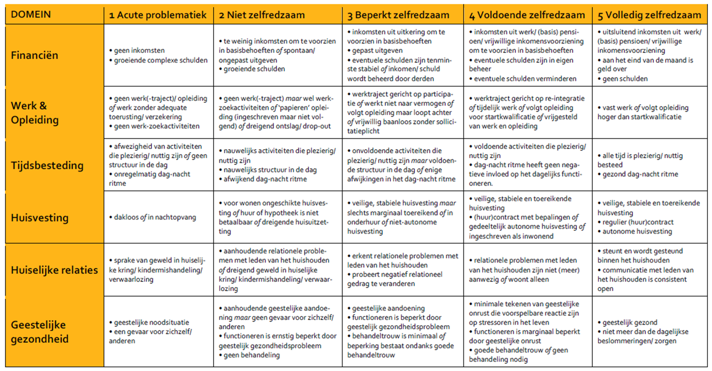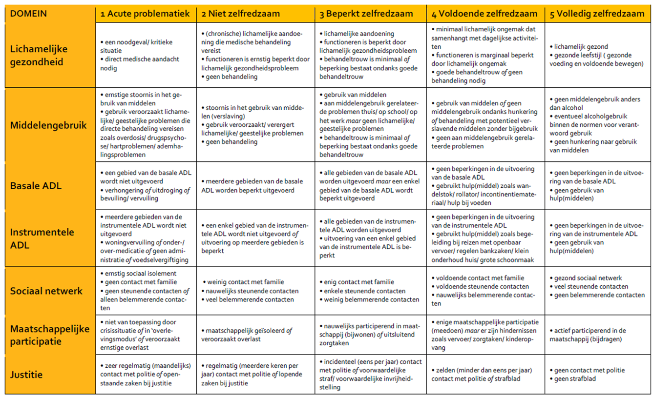 Bijlage 1 Zelfredzaamheid-Matrix