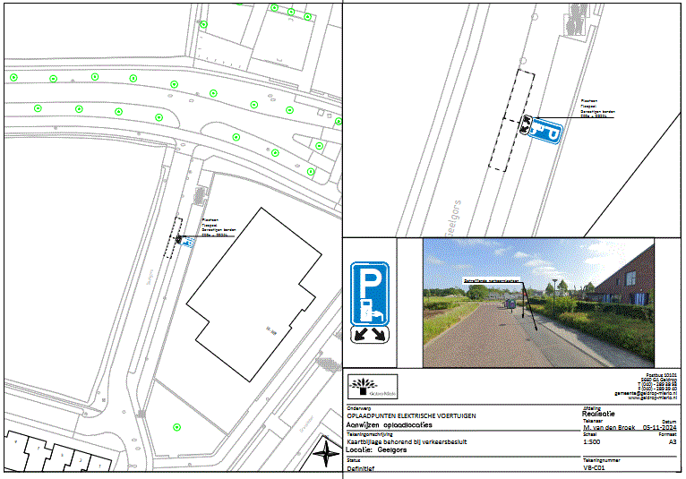 Verkeersbesluit voor het reserveren van twee parkeerplaatsen voor het opladen van elektrische voertuigen aan Geelgors te Mierlo