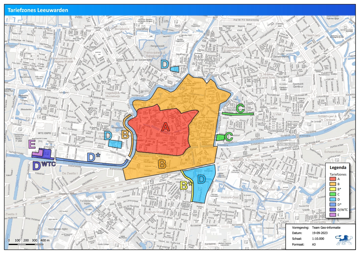 De maatstaf van heffing, het belastingtarief en het belastingtijdvak zijn vermeld in de bij deze verordening behorende en daarvan deel uitmakende tarieventabel en de bijlage “Parkeerzones Leeuwarden 2023” met de zones 1 t/m 4 en 6 t/m 10, zoals vastgesteld in het aanwijsbesluit.