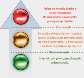 Als de waarde van geluid, gelijk aan of lager is dan de standaardwaarde, is de activiteit of ontwikkeling altijd toelaatbaar.