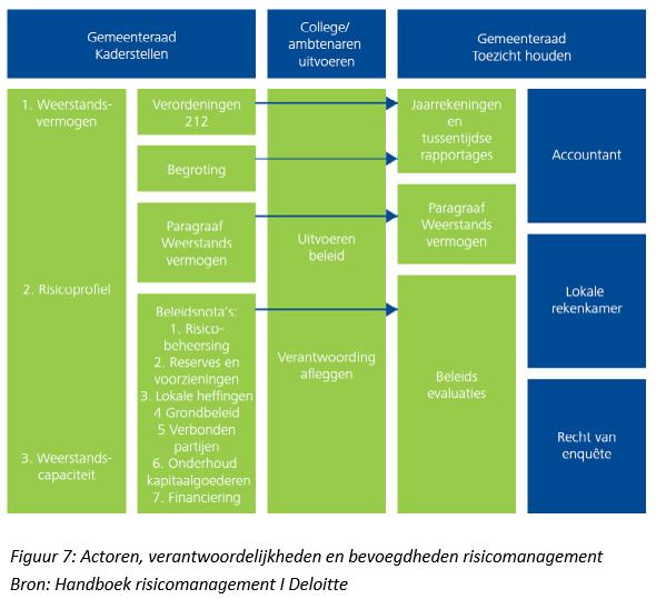 In het risicomanagementproces zijn vele actoren betrokken die er met elkaar voor zorgen dat op een effectieve en systematische manier met risico’s wordt omgegaan. Om inzicht te bieden in de verantwoordelijkheids- en bevoegdheidsverdeling van risicomanagement wordt aan de hand van processtappen onderscheid gemaakt welke actoren, verantwoordelijkheden en bevoegdheden er in hoofdlijnen zijn.