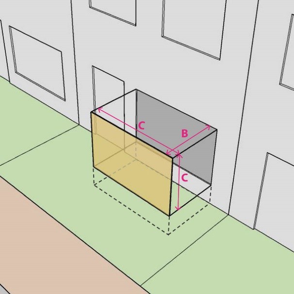 Plinten, pilasters, trappen, kozijnen, gevelversieringen, ventilatiekanalen, schoorstenen, gevel- en kroonlijsten, luifels, erkers, balkons en overstekende daken, mits de overschrijding niet meer bedraagt dan 1,0 meter.