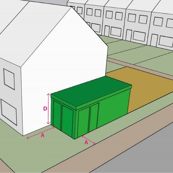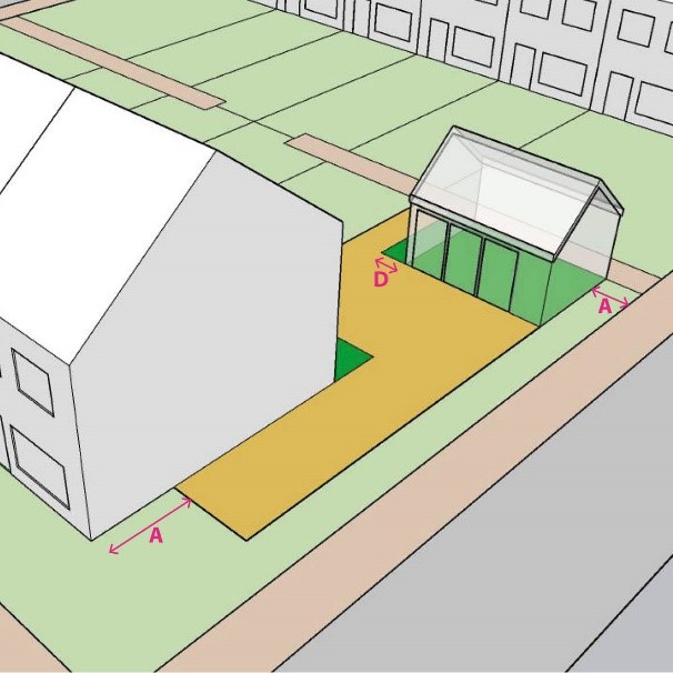 Afstand tot de zijdelingse perceelsgrens: