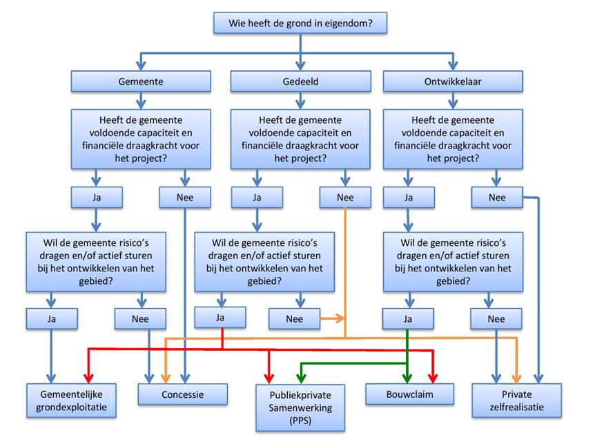 Het uitgangspunt bij het beslismodel zijn de grondposities. Wie bezit deze?