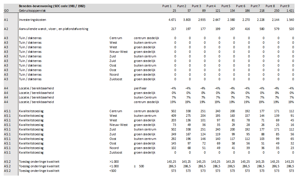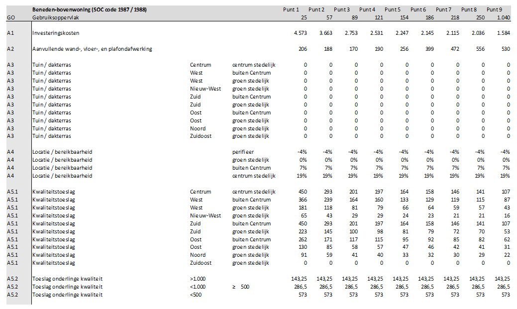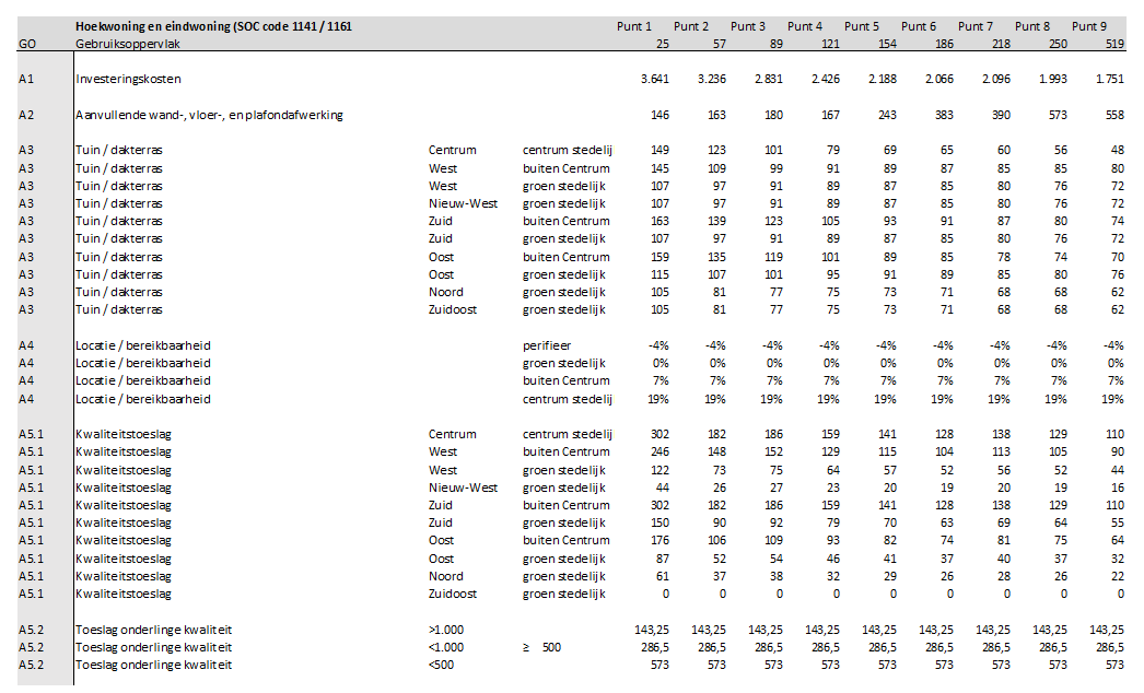 A5.1: Een bepaald woningtype kan in principe overal in de stad voorkomen, maar men verondersteld dat de esthetische eisen aan een nieuwbouwwoning dichter bij het centrum strenger zijn waarvoor een opslag geldt.