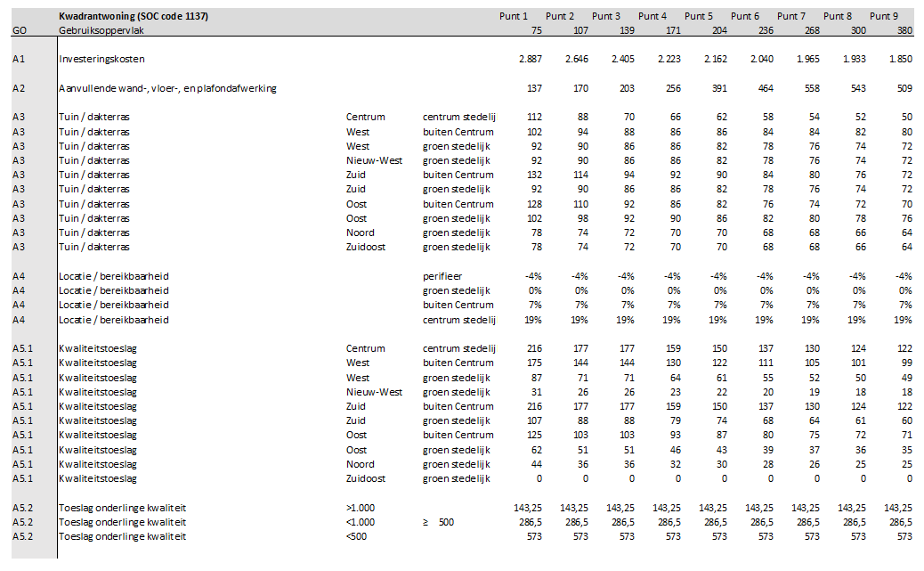 A4: Afhankelijk van de locatie geldt er een opslag op de investeringskosten in verband met gemiddeld lastigere bouwprocessen en hogere kosten, naarmate een woning dichter bij het centrum ligt.