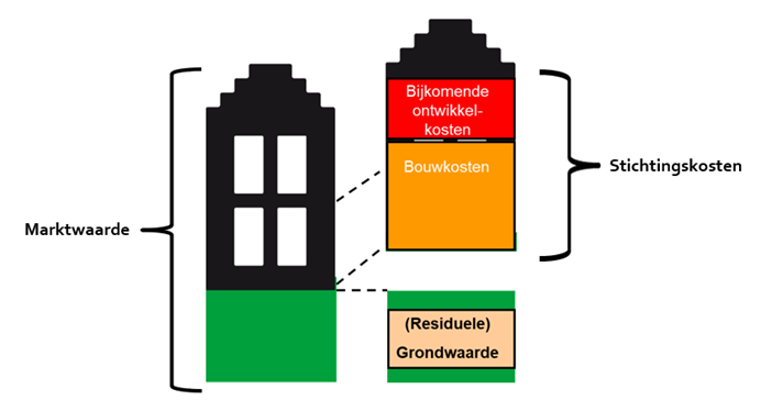 Residuele grondprijs – het verschil tussen de vastgoedwaarde en de stichtingskosten (dan wel opstalwaarde).