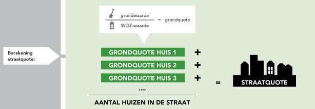 Door de herbouwkosten van de WOZ-waarde af te trekken krijgt men de grondwaarde. De grondquote is het percentage van de grondwaarde t.o.v. van de WOZ.