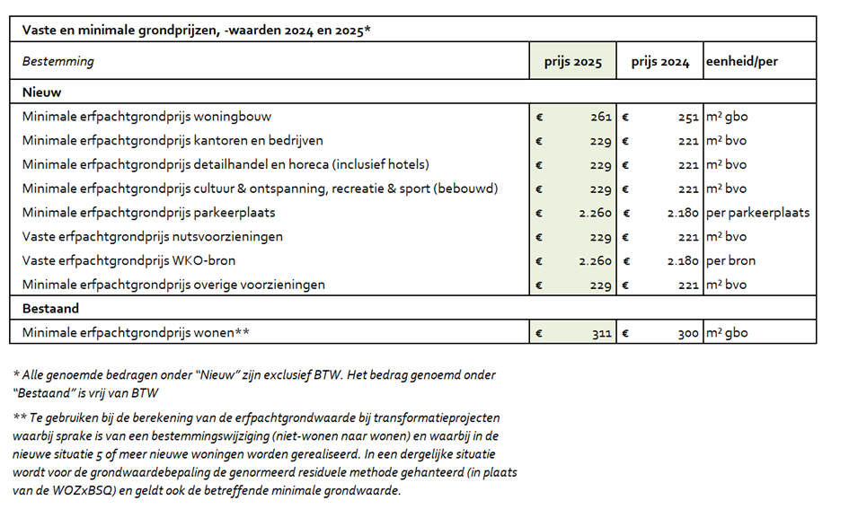 Erfpachtgrondprijzen woningbouw