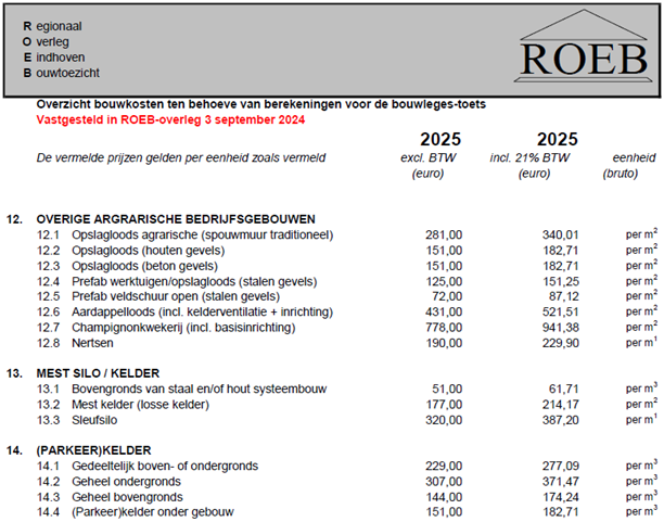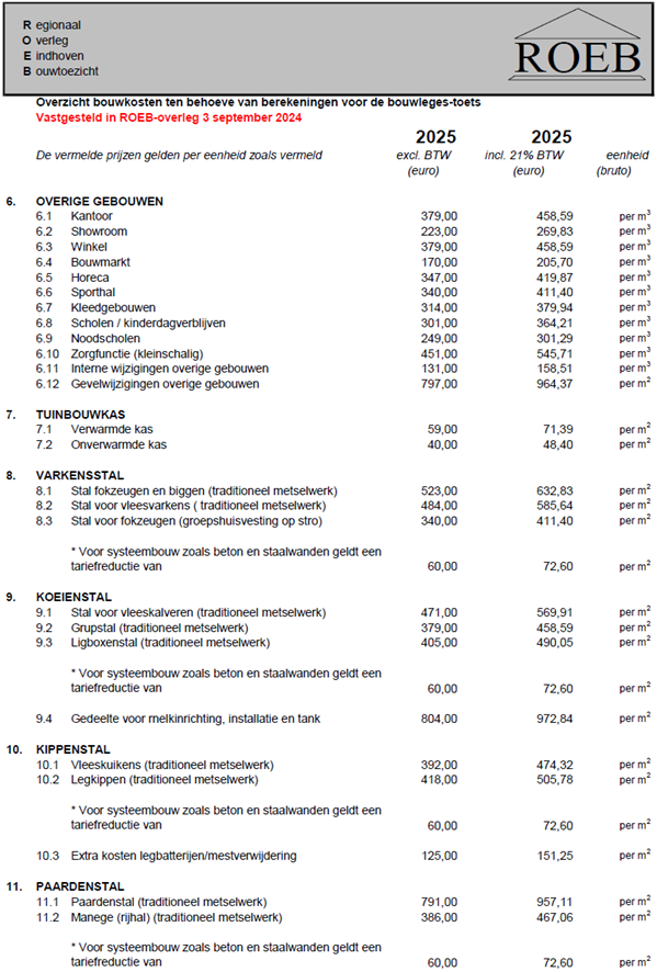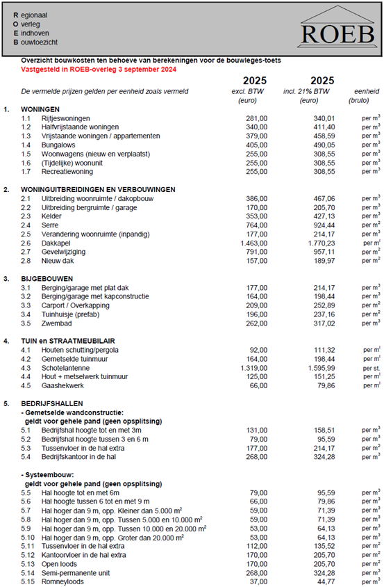Bijlage I - Bouwkosten ROEB 2025 (vastgesteld 3-9-2024)