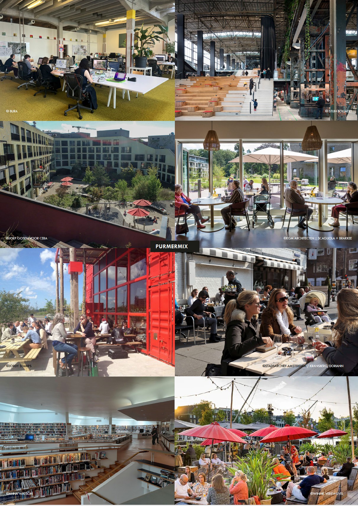 Er ontstaat in het Waterlandkwartier een rijk en levendig stedelijk gebied waar wonen, werken en recreëren samenvallen. We noemen dat de Purmermix. Er is sprake van een gemengd en zeer gevarieerd stedelijk gebied, maar de menging zal niet overal hetzelfde zijn. Op kruispunten van routes, pleinen en plantsoenen ontstaan logischerwijs drukkere plekken. Er is in het Waterlandkwartier een goede balans tussen rust, ruis en reuring.