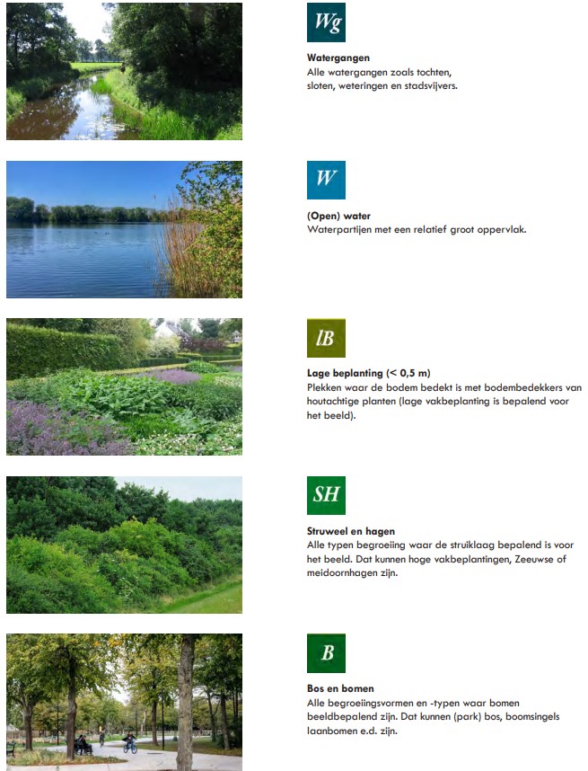 Naast verhardingen spelen ook beplantingen een belangrijke rol. De doelstelling is om een zo groen mogelijk wijk te maken. Hiervoor worden in de profielen ruime plantvakken aangewezen, waarin bomen tot hun volle wasdom kunnen groeien. Voor beplantingsoorten is geen vaste lijst opgesteld en er kan per deelgebied of straat gekeken worden naar geschikte soorten passend bij het voorgestelde ecologische habitat. Hierbij dient rekening te worden gehouden met: lokale condities (groeiplaats, vocht, strooizout etc.). Een afwisseling in soorten (o.a. gemengde lanen) om risicospreiding van uitval van bomen door mogelijke ziektes (essentaksterfte, bloedingsziekte, kanker) te bewerkstelligen zoveel mogelijk inheems.