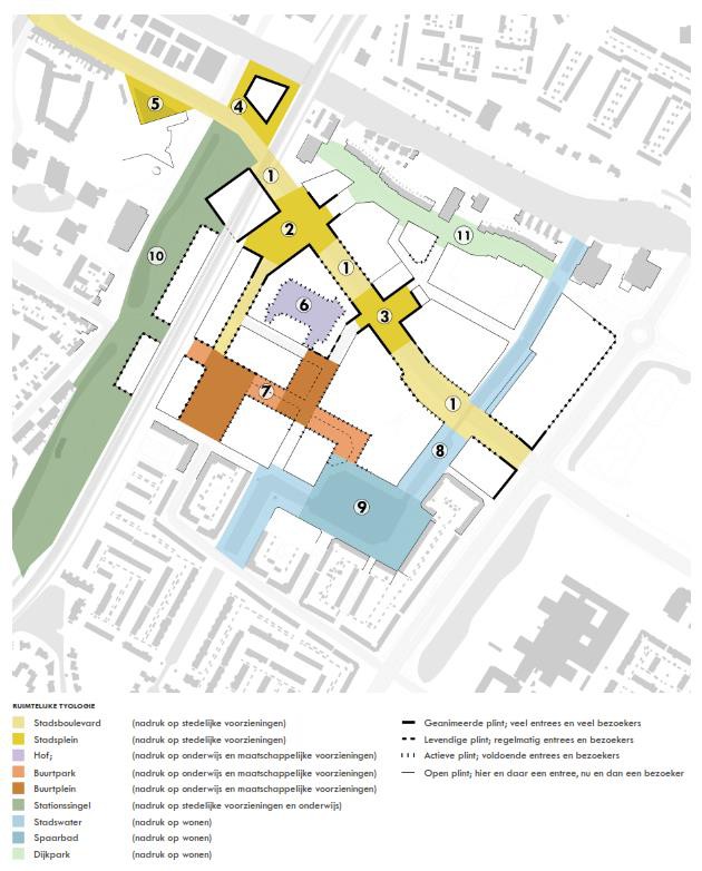 We onderscheiden in het Waterlandkwartier zes ruimtetypes. Het zijn plekken met een eigen karakter en programmering van de openbare ruimte en de plinten.