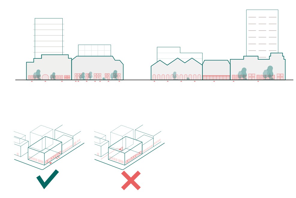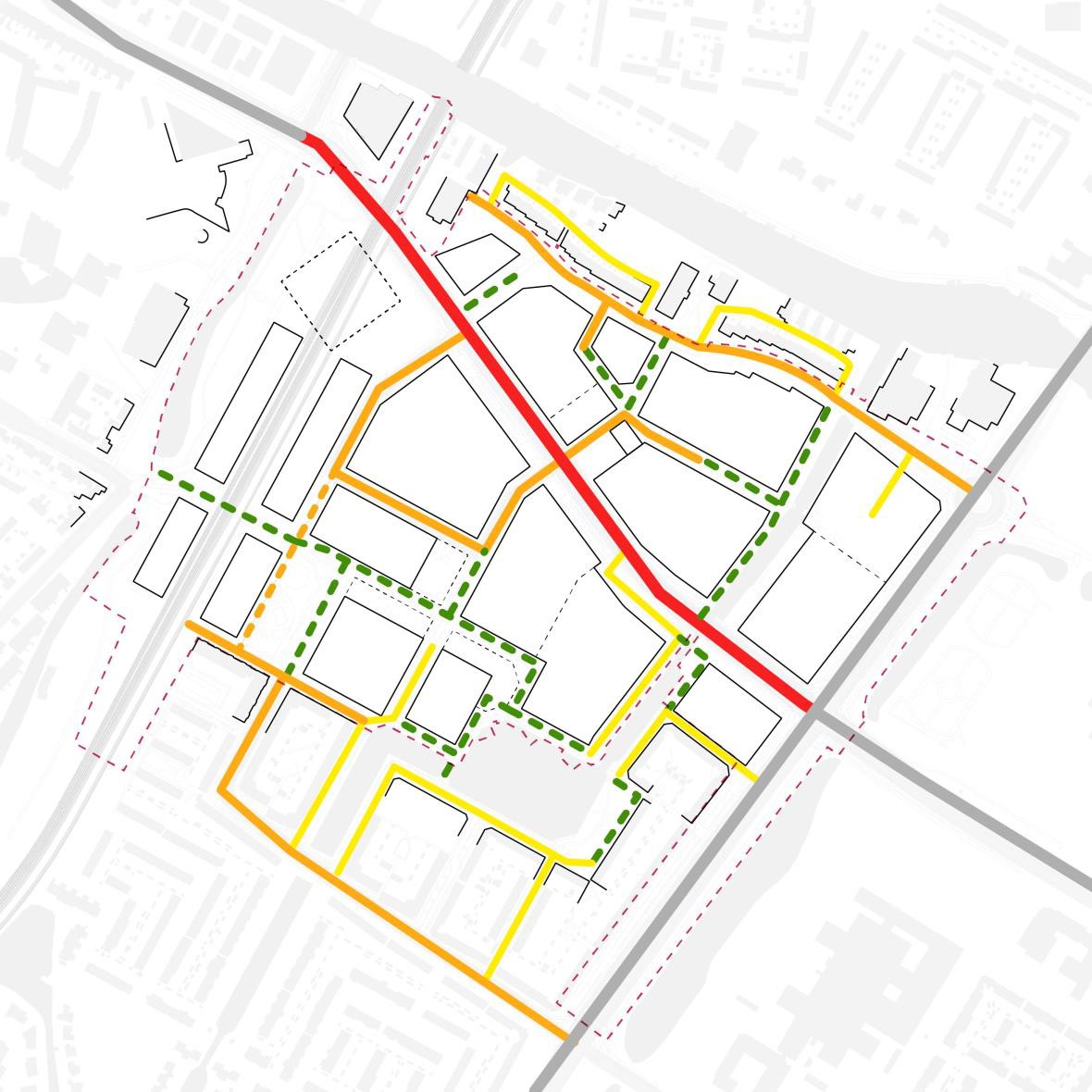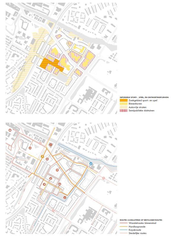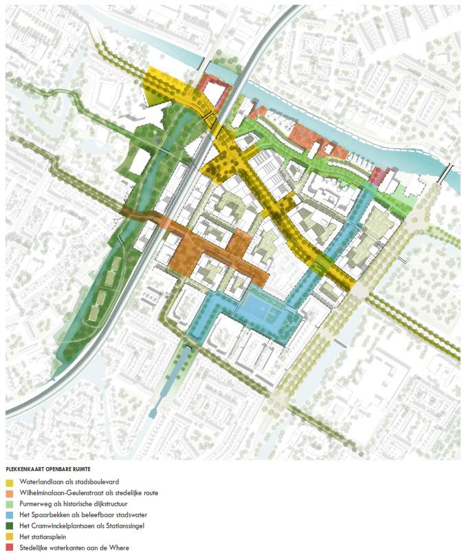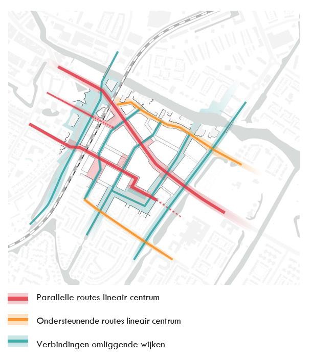 Samen vormen deze routes het ruimtelijk kader, het raamwerk voor de nieuwe stedelijke ontwikkelingen in het plangebied. Binnen dit raamwerk zijn op strategische plekken pleinen en pocket parks toegevoegd om extra ruimte te maken voor groen, recreatie en verblijf. Bij de opbouw van dit raamwerk is de bestaande eigendomsstructuur als vertrekpunt genomen. Op specifieke plekken wordt van de bestaande structuur afgeweken met als doel meer openbare ruimte te kunnen realiseren. De afwijkingen van de rooilijnen worden in overleg met de betrokken eigenaren in het vervolgproces verder onderzocht. Er kunnen daarbij verschuivingen in het raamwerk plaatsvinden, waarbij de hoofdopzet onaangetast blijft.