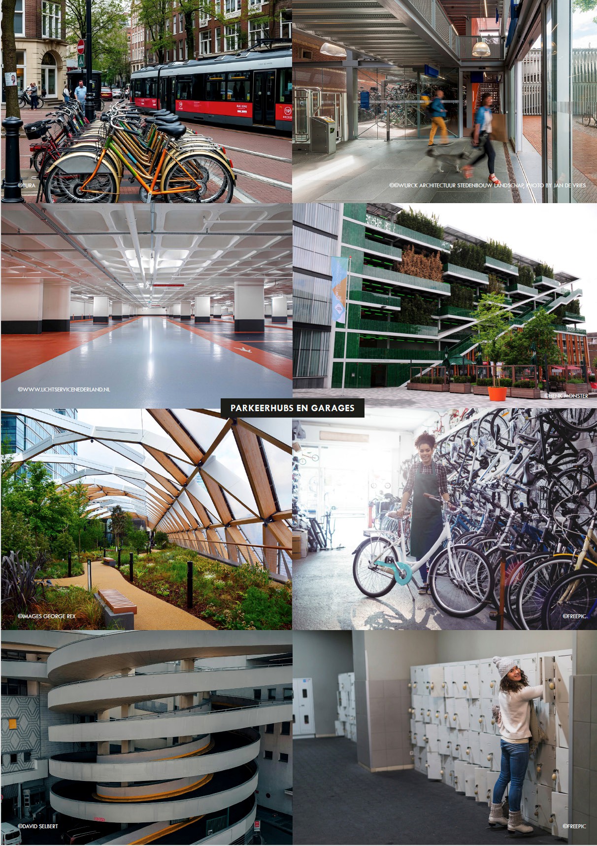Voor gebruikers en bezoekers van het gebied worden publieke fietsenstallingen voorzien. Omdat in de openbare ruimte slechts beperkt ruimte is om het fiets parkeren in te passen, vindt het stallen van fietsen voornamelijk plaats in gebouwde stallingen in de mobiliteitshubs. Voor kortdurend stallen kunnen mensen hun fiets kwijt in vakken, verspreidt over de wijk.