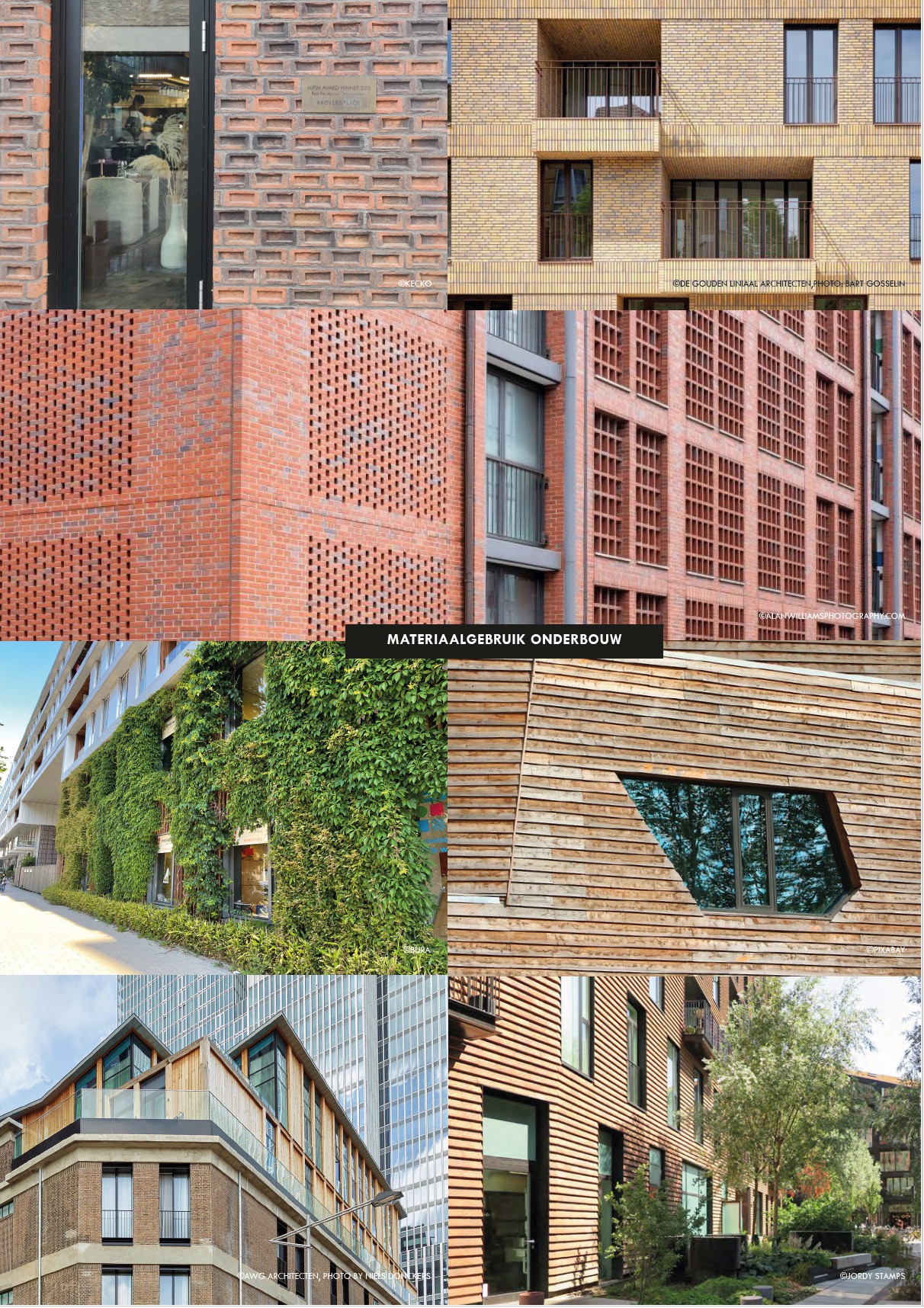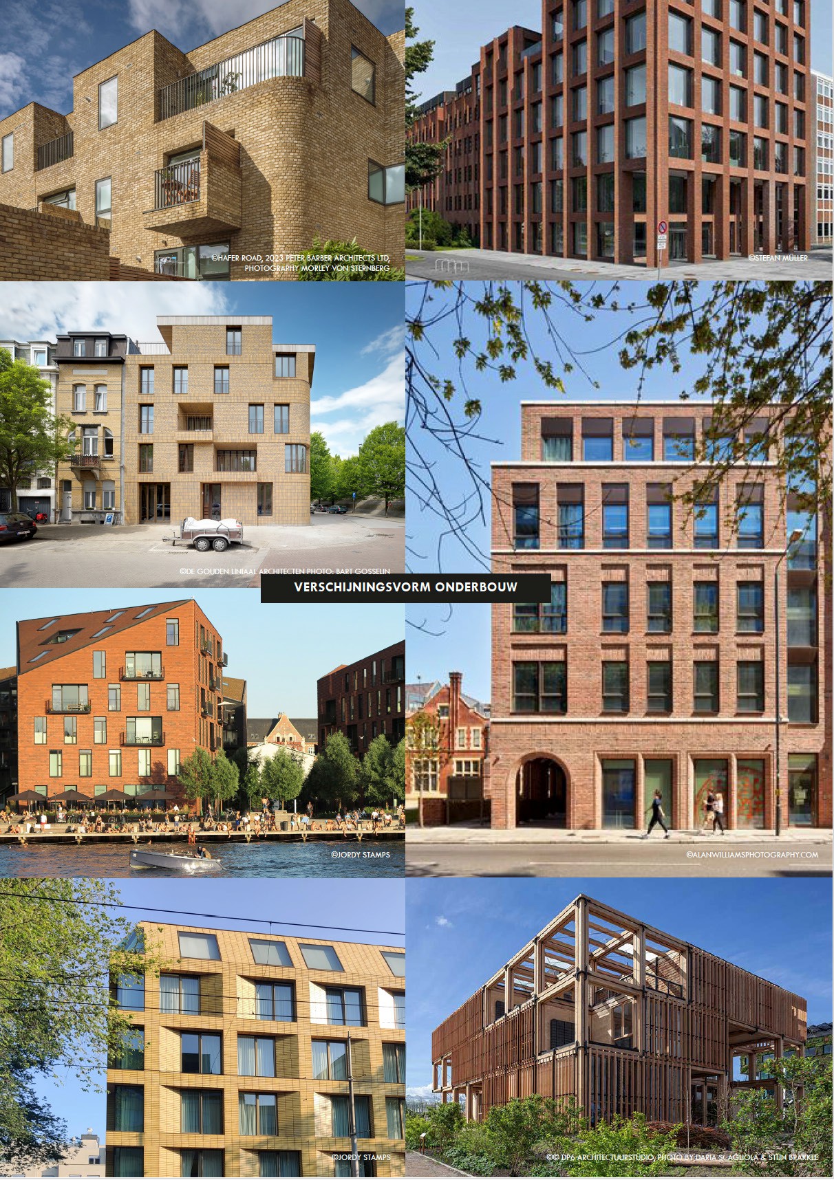 De onderbouw is opgebouwd uit bestaande en nieuwe panden en wordt getypeerd door een jaren zeventig ‘groeikernen’ architectuur. De onderbouw bestaat uit panden die veelal breder dan hoog zijn. Typerend is de schaalverkleining in de gevel, waarmee een verticale geleding wordt verkregen door middel van detaillering, verkleiningen van bouwmassa’s, setbacks, erkers en dergelijke. De architectuur is robuust, veelal van baksteen en eerlijke, hernieuwbare materialen zoals hout.