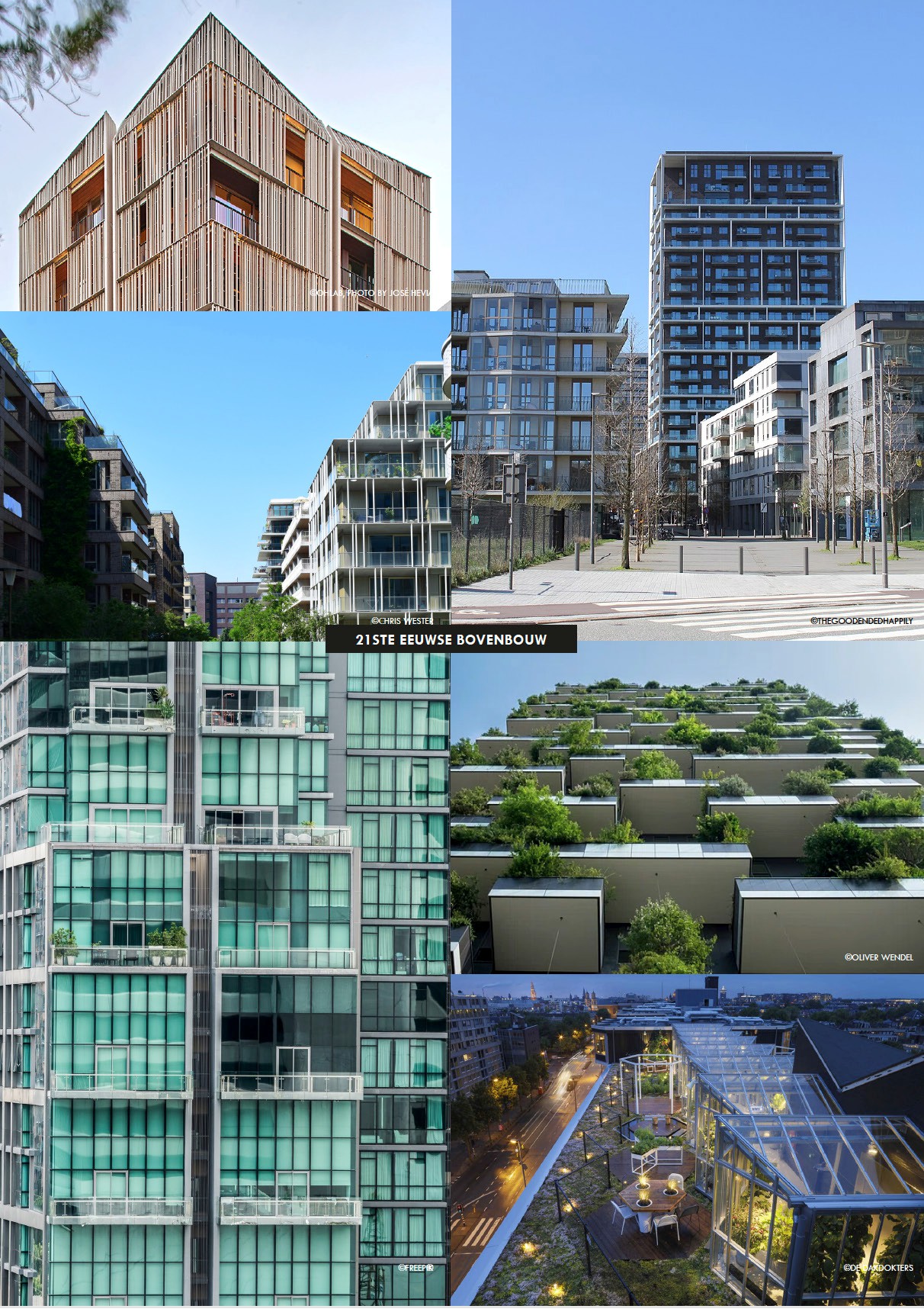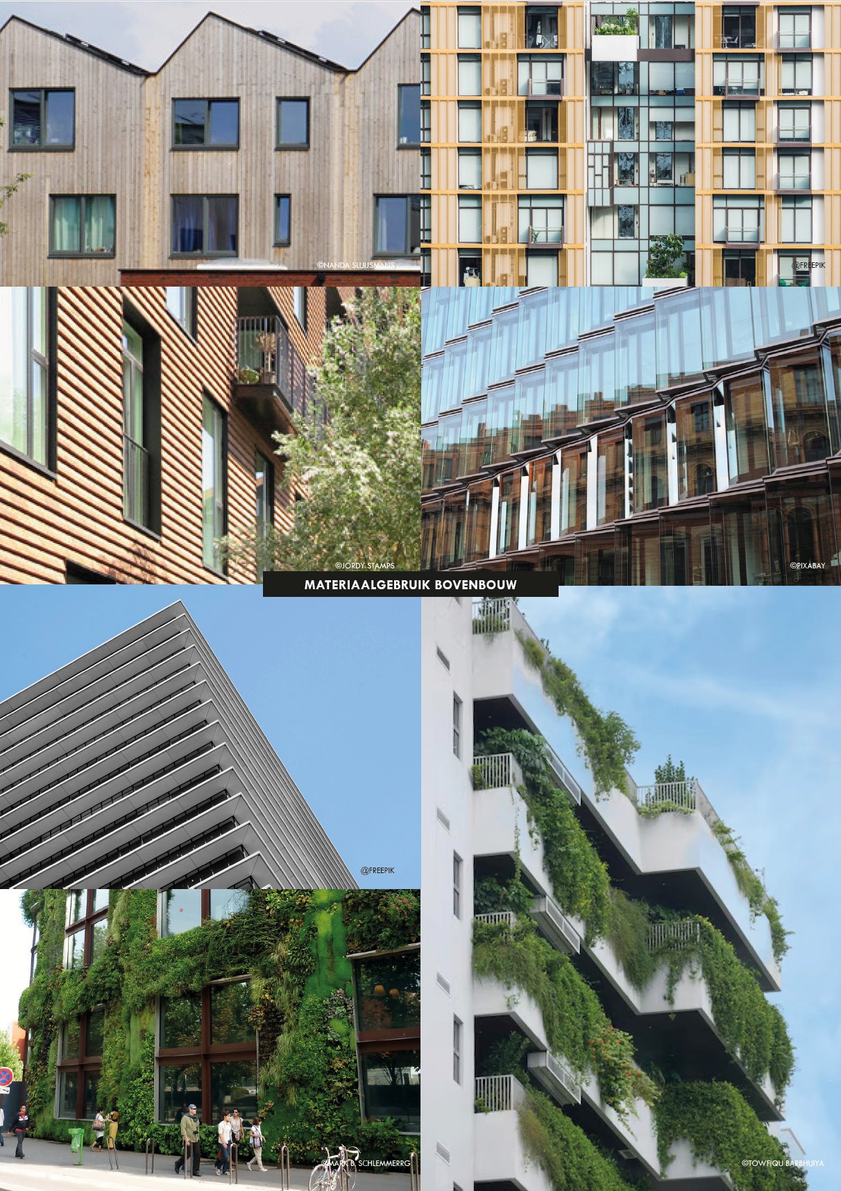 De bovenbouw is duidelijk anders dan de ‘groeikern’ onderbouw. Dit komt terug in het Waterlandkwartier. De bovenbouw wordt gekenmerkt door lichte en transparante volumes van glas, hout of beton met groene elementen (bijvoorbeeld groene gevels).