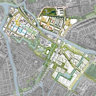 Het Waterlandkwartier wordt een gemengd hoogstedelijk gebied met wonen, werken en (maatschappelijke) voorzieningen. |