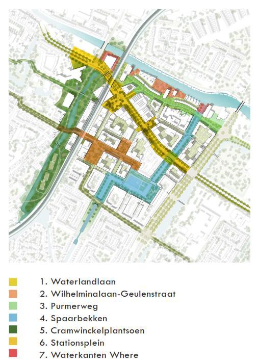 Er is behoefte aan toegankelijke en geprogrammeerde waterkanten aan de Where. Hierin zijn er twee verschillende gebieden de meer minerale en actieve plekken bij P3 en de aansluiting van de Spaarbekken en daar tussen het een rustige en groener gebied rondom de woningen. De plekken langs de Where worden gekoppeld aan de herinrichting de Waterlandlaan (P3) en van de Purmerweg (overige gebieden)