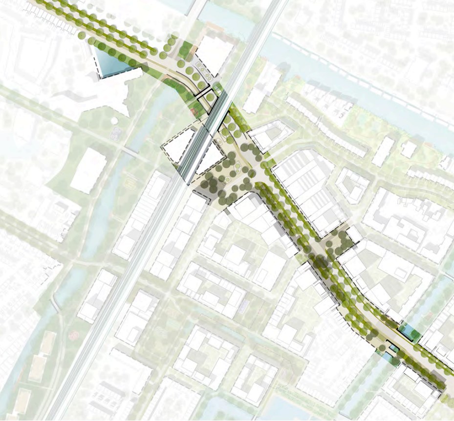 In het MasterplanMasterplan wordt de singel beter verbonden met haar omgeving: via het fietspad langs de Burgemeester Kooimanweg met het Wagenweggebied en ontsluit de westelijke ingang van het toekomstige nieuwe station aan de Waterlandlaan. Ook kan de aanloop naar de tunnel worden verbeterd door de keermuren te vervangen door taluds. Zo wordt de route veel aantrekkelijker want aan weerszijden van de tunnel begint het plantsoen al direct in de taluds. Met een elegante wandelbrug over de Waterlandlaan kan de wandelaar worden verleid om de sprong over de laan te maken tot aan de waterkanten van de Where. De openbare ruimte rondom P3 zou hierbij ook sterk verbeterd kunnen worden. Keerwanden zouden zoveel mogelijk vervangen kunnen worden door groene taluds. Deze ambitie sluit nauw aan bij de wensen van P3 om het gebouw meer te openen naar de omgeving.