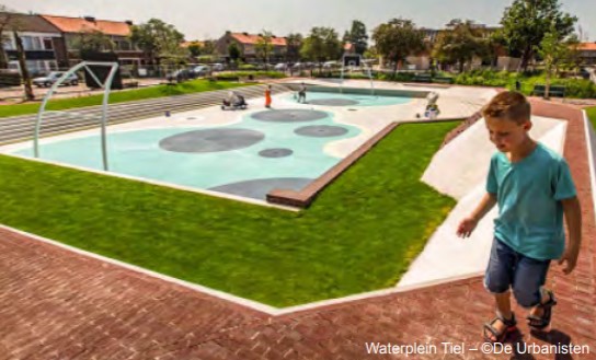 Het spaarbekken en spaarbad is samen met het buurtpark de voornaamste verblijfsplek in het Waterlandkwartier. De waterkant is groen en het water is benaderbaar en bruikbaar. In de winter kan hier geschaatst worden. Hier wordt voornamelijk gewoond, aan straten die worden gedomineerd door groen en water. Dat betekent niet dat hier niets gebeurt: naast alle entrees voor de bovengelegen appartementen liggen hieraan juist díe ruimtes waarin geleefd wordt en is er (beperkt) ruimte voor een lokale horecavoorziening aan het water. De levendige plinten dragen bij aan een veilige en aangename woonomgeving waar mensen elkaar ontmoeten en voor elkaar een oogje in het zeil houden.