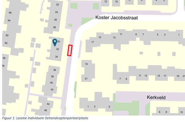 Uit oogpunt van het in stand houden van de weg en het waarborgen van de bruikbaarheid daarvan, en het zoveel mogelijk waarborgen van de vrijheid van het verkeer (artikel 2 Wegenverkeerswet 1994 lid 1), is het gewenst in de Koster Jacobsstraat t.h.v. nummer 32 te Schimmert een individuele invalidenparkeerplaats aan te leggen.