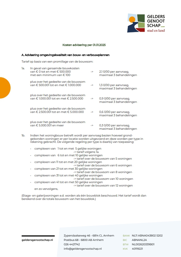 Tarieventabel, behorende bij de Legesverordening Culemborg 2025