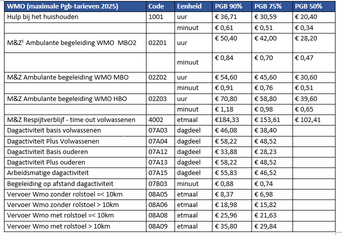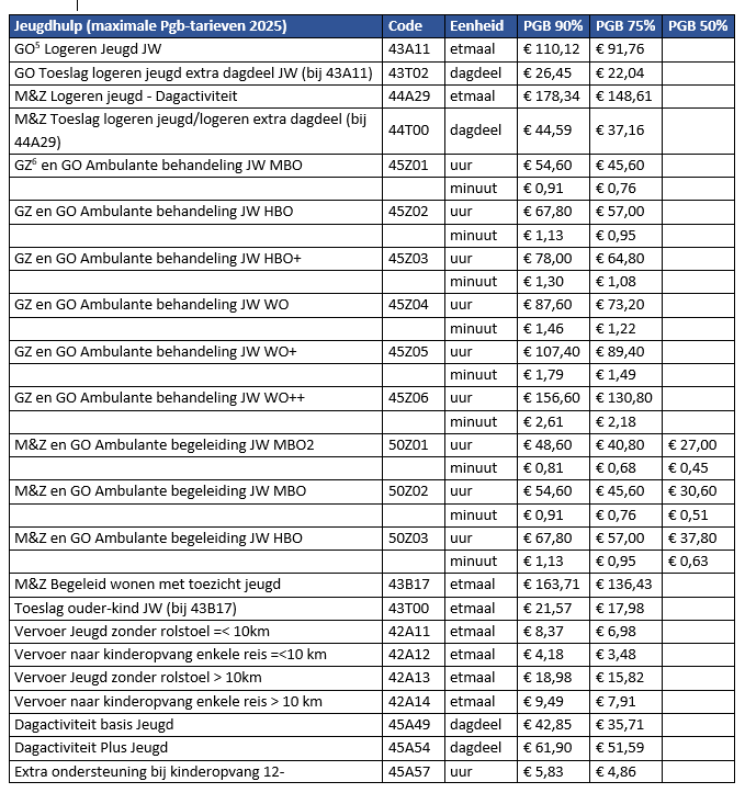 Hoofdstuk 2 Pgb-TARIEVEN VOOR DIENSTEN
