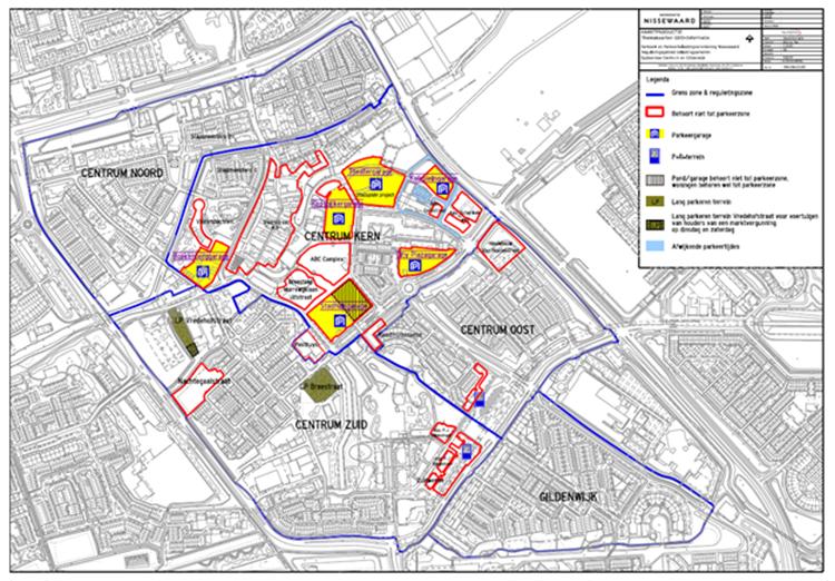 Kaart reguleringsgebied belastingparkeren Spijkenisse Centrum en Gildenwijk, versie 8 (01-01-2025)