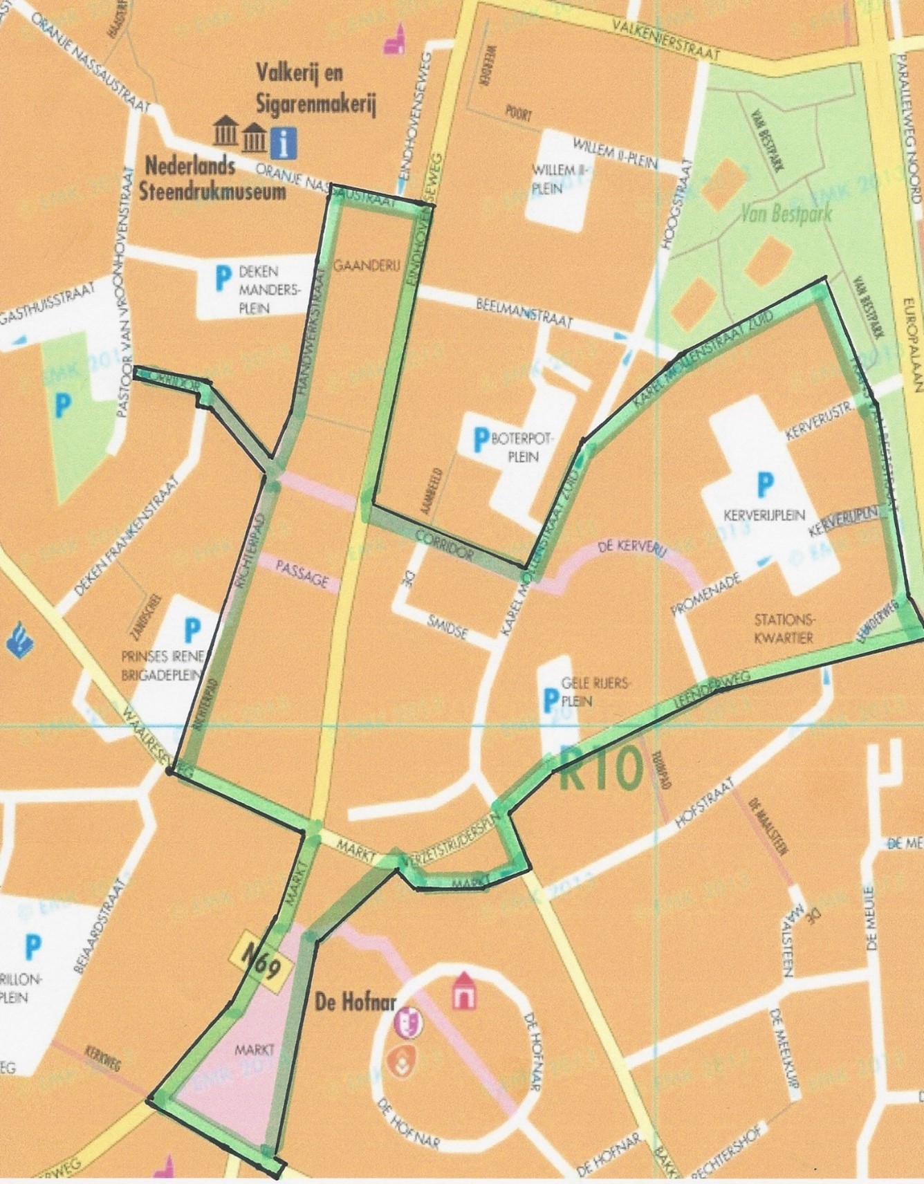 Het gebied waarop de verordening van toepassing is, wordt begrensd door en omvat de volgende straten: