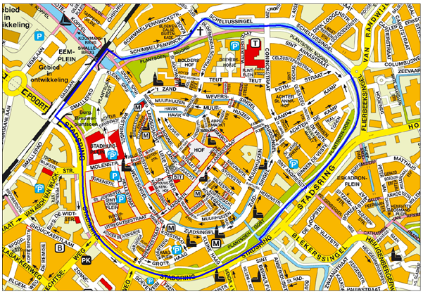 Bijlage 1: Kaart van het afgebakende gebied behorende bij de Verordening reclamebelasting binnenstad Amersfoort 2025