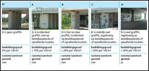 Voor graffiti hanteren we het beeldniveau B volgens onderstaande tabel.