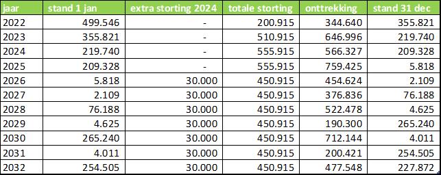 Ten opzichte van het vorige beleidsplan is vanaf 2026 een verhoging van €30.000 jaarlijks noodzakelijk. Dit is met name te verklaren dat de onderhoudskosten explosief gestegen zijn ten opzichte van 2022.