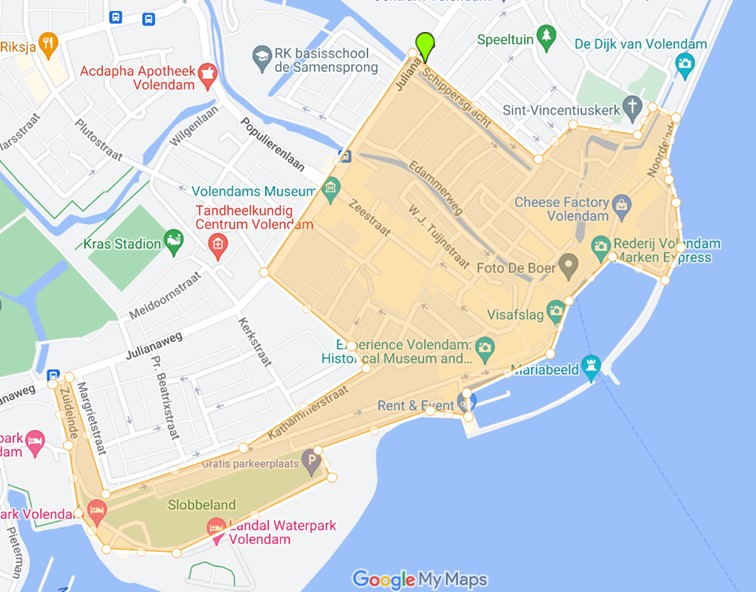inrichtingen, welke zijn gelegen aan een van de volgende straten te Volendam: Zuideinde, Haven tussen Zuideinde en Thirty5, Brugstraat, Meerzijde, Edammerweg, Dril, Ventersgracht, Zeestraat, Spoorbuurt en Rokersgracht/Burg. Kolfschotenplein, van vrijdag 5 september a.s. 10.00 uur tot en met dinsdag 9 september a.s. 01.00 uur.