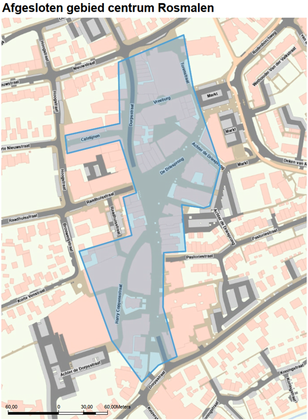 Geslotenverklaring Centrum Rosmalen: het autoluwe gebied gelegen in het centrum van Rosmalen zoals aangegeven op het bij dit reglement als bijlage behorende tekening.