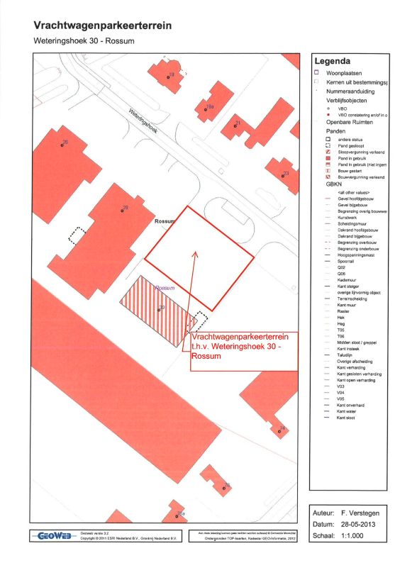 Het college heeft alle wegen in de gemeente Maasdriel aangewezen waar het verboden is grote voertuigen te parkeren. Uitzonderingen op dit verbod zijn de vrachtwagenparkeerterreinen ter hoogte van de Weteringshoek 30 te Rossum en Maasbandijk 1 te Kerkdriel zoals aangegeven op de tekeningen in bijlage 3.