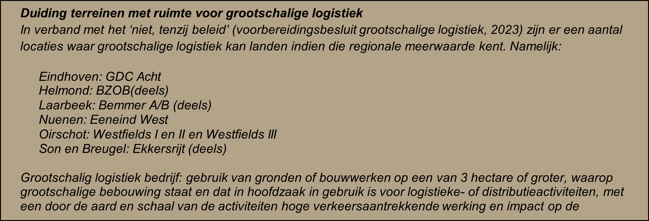 De regio Zuidoost-Brabant stemt, tegelijkertijd met dit visiedocument werklocaties, in met de Ontwikkelstrategie Zuidoost-Brabant. In deze Ontwikkelstrategie Zuidoost-Brabant worden richtinggevende keuzes en ontwikkelprincipes voor wonen, werken en bereikbaarheid voor de periode tot 2040 voorgesteld. Deze Ontwikkelstrategie wordt tegelijkertijd met deze Visie Werklocaties geagendeerd op de Omgevingsdag van juli 2023.