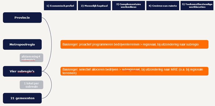 Kijkend naar het economisch profiel als geheel, met de accenten per subregio daarbinnen, hanteren we de volgende leidende principes voor de programmering van werklocaties: