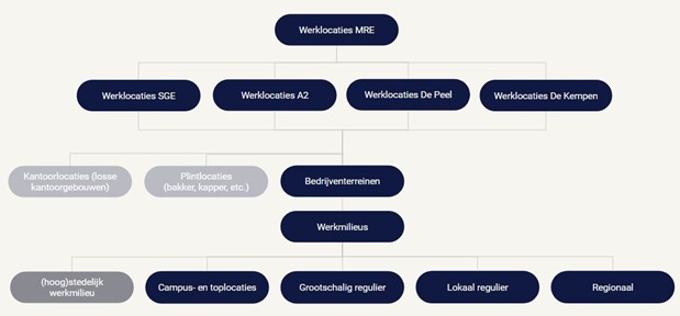 Deze visie gaat over werklocaties binnen de MRE en dan specifiek over bedrijventerreinen. Bedrijventerreinen onderscheiden we in verschillende typen werkmilieus (zie bijlage 1 voor definities). Kantoorlocaties en plintlocaties maken geen onderdeel uit van deze visie. De Regionale Programmering Werklocaties, waar deze visie de basis voor is, gaat met name over de programmering van bedrijventerreinen. Hieronder vallen geen hoogstedelijke werkmilieus, omdat deze zich veelal niet op bedrijventerreinen bevinden. Gemengd stedelijke werkmilieus maken wel deel uit van de visie. Tevens is deze visie een aanzet tot hoe partijen gezamenlijk uitvoering gaan geven aan deze programmeringsafspraken.