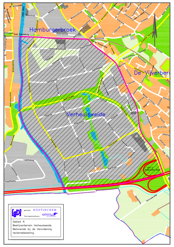 Deze verordening op de heffing en invordering van reclamebelasting is van toepassing binnen de volgende gebieden van de gemeente Doetinchem: