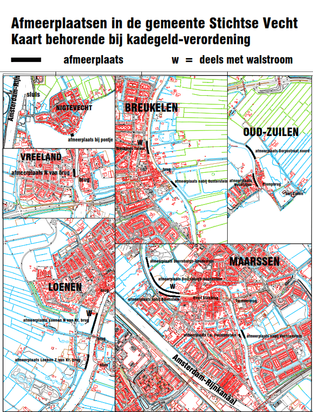 Er worden in de Stichtse Vecht, onder de benaming kadegelden, rechten geheven wegens het gebruik maken van de openbare aanlegplaatsen, zoals aangegeven op de bij deze verordening behorende kaart, waarop tevens is aangegeven waar walstroom beschikbaar is.
