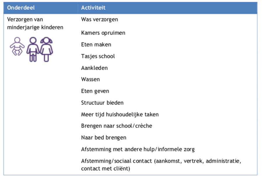 De zorg voor kinderen die tot het huishouden behoren is primair een taak van de ouders. Zo moeten werkende ouders er zorg voor dragen dat er op tijden dat zij beiden werken, opvang voor de kinderen is. Dat kan worden ingevuld op de manier waarop zij dat willen (oppas, grootouders, kinderopvang), maar het is een eigen verantwoordelijkheid. Dat is niet anders in de situatie dat beide ouders mede door beperkingen niet in staat zijn hun kinderen op te vangen. In die situatie zal men een permanente oplossing moeten zoeken. Kan/kunnen de ouder(s) deze rol tijdelijk niet vervullen dan kan bij fulltime werkzaamheden, aanvullend op de eigen mogelijkheden, worden geïndiceerd voor een beperkte duur. De wet heeft in deze vooral een taak om tijdelijk in te springen, zodat ruimte ontstaat om een goede oplossing te zoeken. Dat wil zeggen: de acute problemen worden opgelost, zodat gezocht kan worden naar een permanente oplossing.